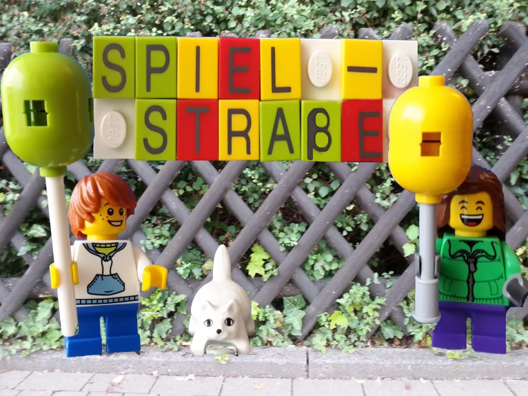 = großes Plakat am Zaun zur Information für die Spielstraßenraser